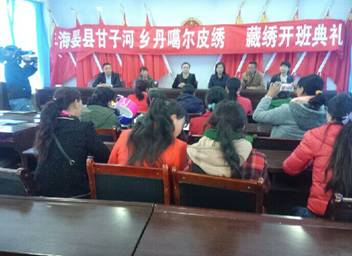近日, 为提高牧区妇女劳动力创业就业能力,实现增收致富,同时帮助更多的牧区妇女依靠双手创造幸福美好生活,助力全县精准扶贫战略目标,县就业局充分利用环湖地区生态旅游文化资源,与扶贫开发局在甘子河乡联合举办了丹噶尔皮绣(藏绣)培训班,为促进妇女劳动力就业创业搭建了技能平台。