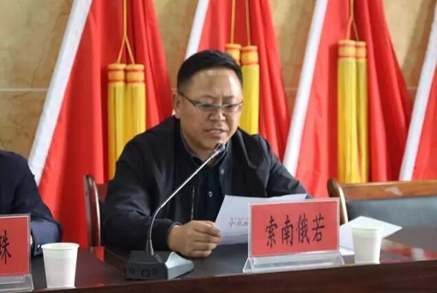 县委常委、统战部部长索南俄若宣读了县委对金滩乡党委、东达村党支部表彰决定。