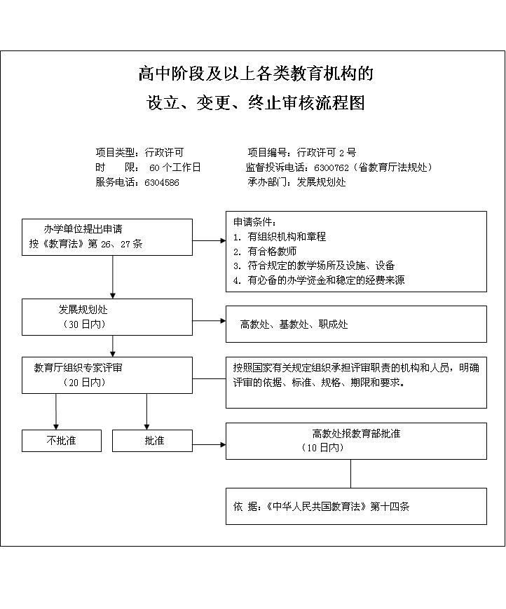 高中阶段及以上各类教育机构的设立、变更、终止审核流程图